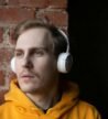 Two handmade, woven leather sandals are displayed against a vibrant yellow wall. The shoes feature a striking blue and white pattern with intricate weaving, showcasing craftsmanship and attention to detail.